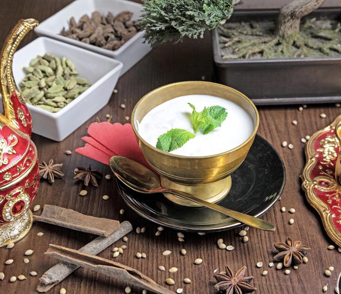 Yogurt with mint, black pepper, salt and chat masala
