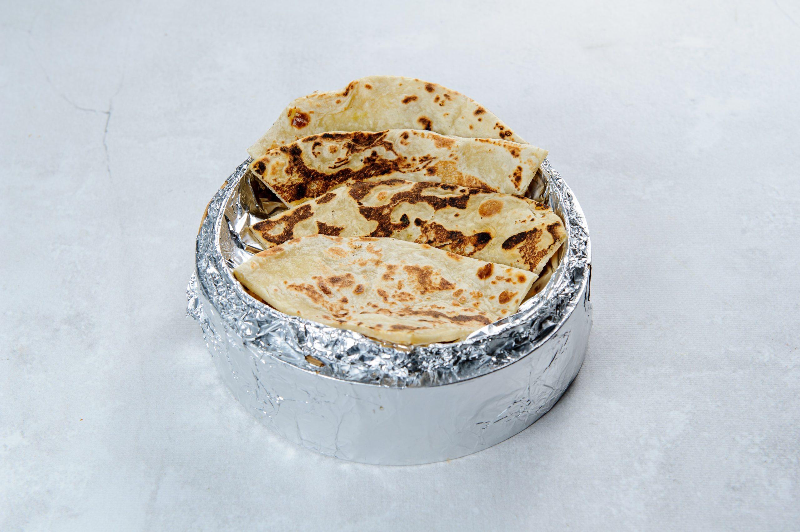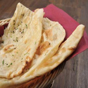 Plain naan is a soft, fluffy Indian flatbread made from a simple, leavened dough of wheat flour, yeast, salt, and water, sometimes with milk or yogurt added. Traditionally cooked in a hot clay oven called a tandoor, plain naan has a slightly chewy texture with a soft interior and a sometimes-blistered, lightly charred surface. It serves as a versatile accompaniment to Indian dishes like curries and stews, or can be enjoyed on its own.